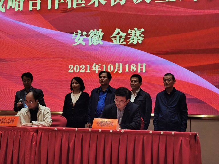 2021年10月18日,中国健康教育中心党委书记、主任李长宁与金寨县县委副书记、县长张涧