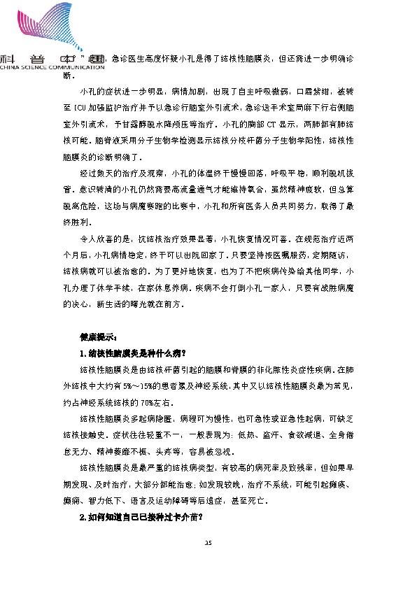 身边的结核病故事——没接种卡介苗,少女与死神殊死搏斗