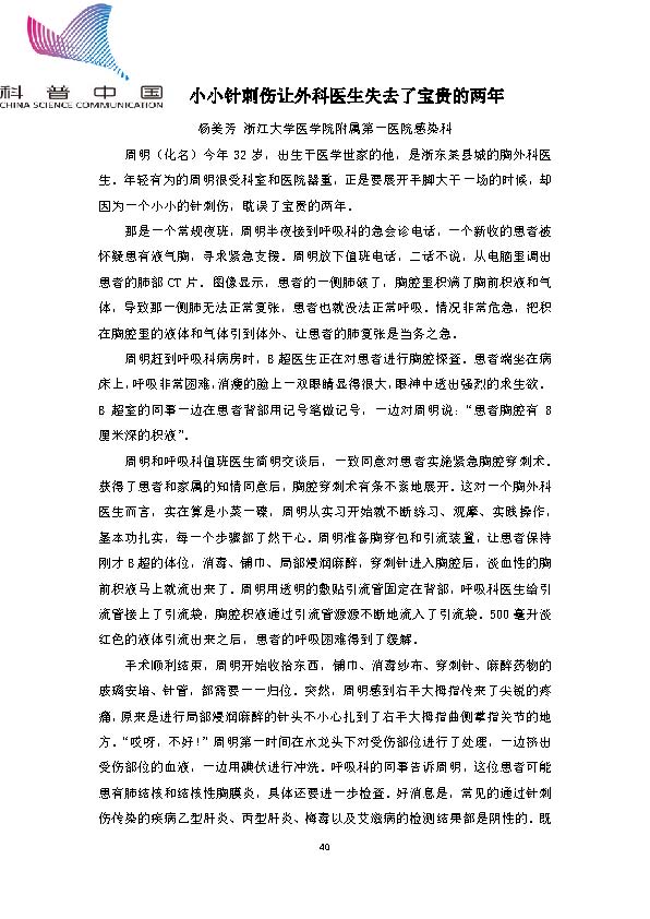 身边的结核病故事——小小针刺伤让外科医生失去了宝贵的两年